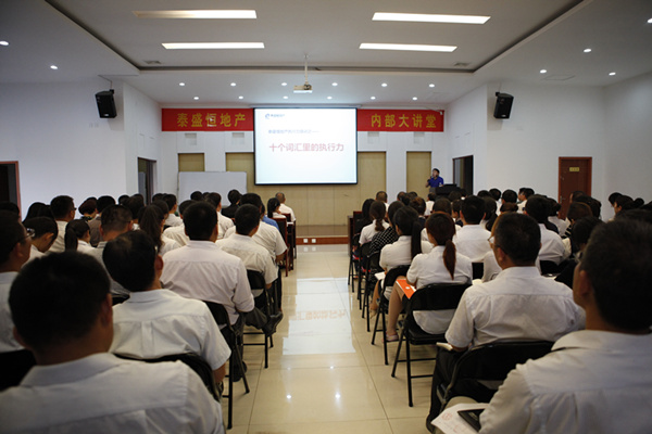 7月8日晚19時,在這炎炎夏日的傍晚,公司六樓會議室座無虛席,來自地產公司、奧晟物業(yè)、啟翔房產和中匯地產的領導與員工早早的來到會場。營銷總監(jiān)光文廣為大家?guī)淼膱?zhí)行力系列培訓之《十個詞匯里的執(zhí)行力》。