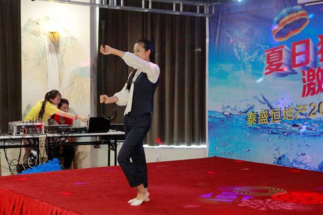 整潔優(yōu)雅的環(huán)境、整齊美觀的桌椅、動感活潑的音樂、繽紛閃耀的燈光、精致可口的甜點,使整個活動現(xiàn)場熱鬧而不失穩(wěn)重,溫馨而不失活潑。伴隨著動感的音樂,大家紛紛就坐,與周圍的同事熱情交談。上午10時30分,活動準(zhǔn)時開始。泰盛恒地產(chǎn)總經(jīng)理黃總首先發(fā)表了開場致辭,隨后各部門開始表演精心準(zhǔn)備的節(jié)目。《擼起袖子加油干》、《我相信》等合唱唱出了氣勢,唱出了希望,《干了這杯酒》、《紅日》等獨唱唱出了個性,唱出了風(fēng)采。舞蹈及健身操等節(jié)目也相繼上演,展示了公司員工積極的精神風(fēng)貌。節(jié)目表演過程中還穿插了精彩的抽獎環(huán)節(jié),引得現(xiàn)場陣陣歡呼。