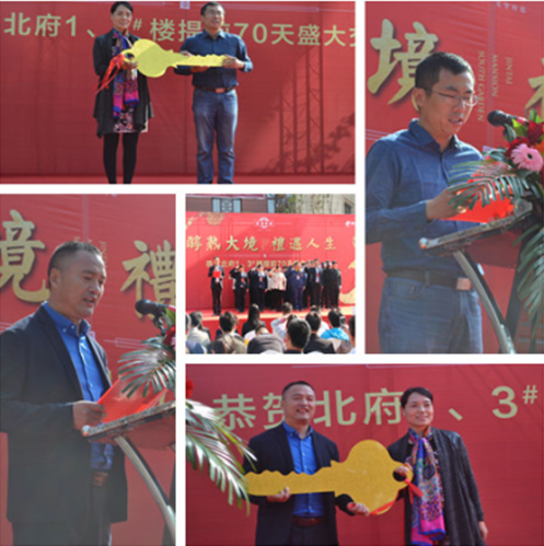 在氣勢雄渾的軍樂鑼鼓隊和精彩紛呈的舞獅表演之后,北府提前交房儀式正式開始。泰盛恒地產(chǎn)伏總、業(yè)主代表及物業(yè)公司周總分別進(jìn)行致辭并進(jìn)行交接鑰匙儀式,隨后物業(yè)同仁進(jìn)行服務(wù)宣誓。接著在喜慶的鞭炮聲中,現(xiàn)場業(yè)主開啟溫馨交房之旅。