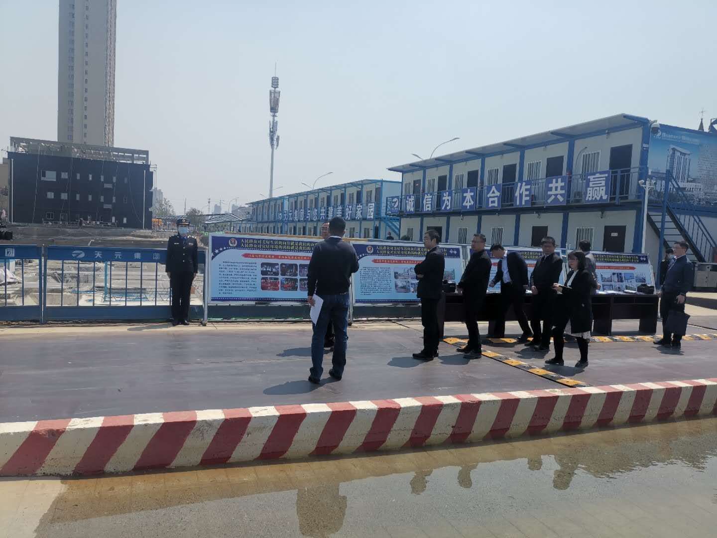 在見證了金泰·錦府項目干凈、整潔的施工現(xiàn)場后,各來訪領(lǐng)導(dǎo)均給予了充分肯定,對金泰·錦府項目的渣土運輸、揚塵治理工作給予了高度評價。