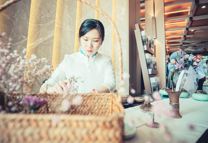 除了沙盤講解與入室品鑒,金泰·錦府營銷中心開放當(dāng)日更營造了一個(gè)古樸典雅與現(xiàn)代風(fēng)尚完美融合的新意境。一首古箏曲,滿園傳詩意;曲水流觴處,遍地是花香;中式風(fēng)骨韻,潤(rùn)物細(xì)無聲。一條蜿蜒的水景溫柔的載著這五顏六色的花瓣將琴棋書畫茶酒花送往心中的遠(yuǎn)方,向眾人展現(xiàn)最淋漓盡致的美。另有桃花釀、桂花酥、英俊帥氣調(diào)酒師;調(diào)香師,茶藝師,圍棋美女見真章;書法家,國畫家,字畫之中有真諦……